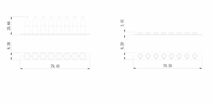 | LY010220L | 0.2ml透明QPCR連蓋平蓋8聯管 | 透明 | 120條/盒,10盒/箱 |